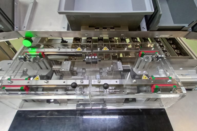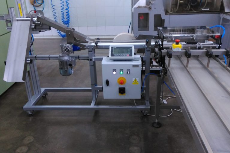 Dopravní systém pro krabičky naplněné čajovými sáčky řeší potřebné otočení krabičky, její přesné zvážení (případné vyřazení neúplného balení), a dopravu…